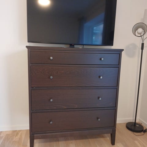 IKEA kommode med to skuffer. Front i træfinish og sider i sort. Velegnet til opbevaring i forskellige rum i hjemmet.