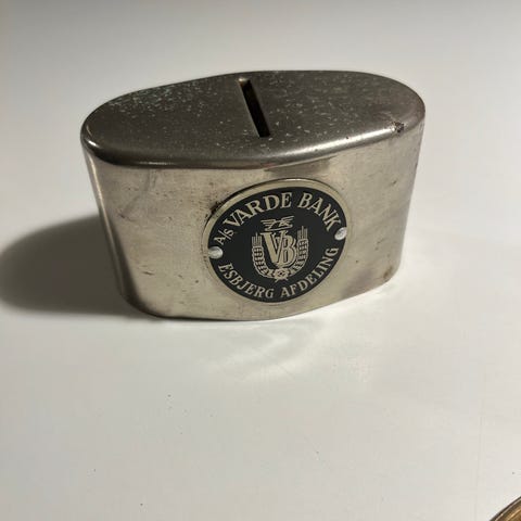 Sparebøsse, Metal, højde 11,5 cm.