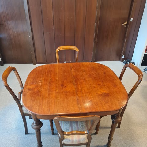 Antikt bord med 4 flotte stole