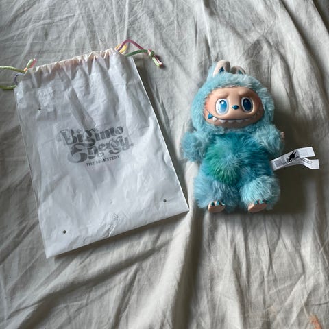 Tre labubus fra serien pin for love sælges (2 fra den gule serie og 1 fra den blå serie). De er uåbnet, ægte og købt direkte fra popmarts hjemmeside, kvittering haves og qr kode kan scannes for ægthed. Jeg sælger dem til den pris popmart sælger til og ikke overpris som andre steder. Hvis alle tre købes kan vi aftale en pris på 400 kr.