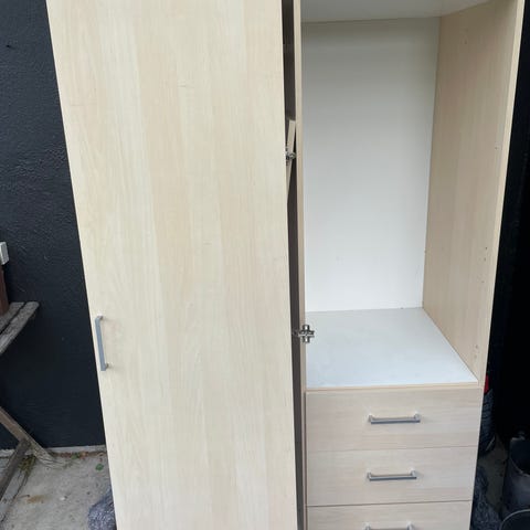 Garderobeskab med bøjle stang samt skuffer