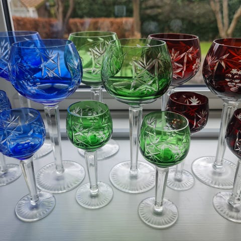 4 sjældne Bøhmisk krystal vinglas