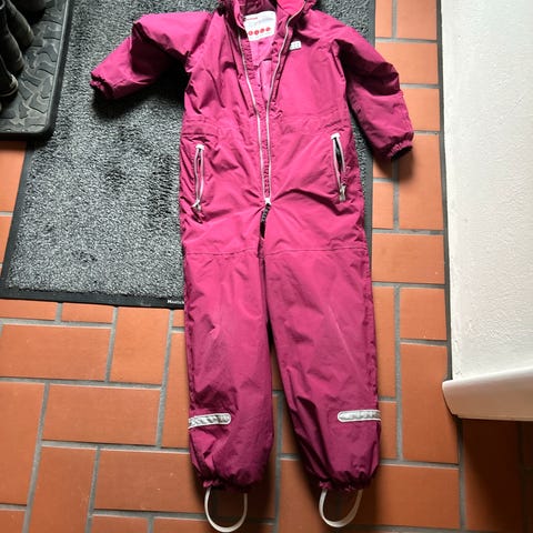 Flyverdragt i sort farve fra mærket LEGO TEC. Dragten har en hætte og lynlås foran. Den har lommer med trykknapper og reflekser ved ærmer og ben. Stoffet ser holdbart ud og er velegnet til udendørs vinterbrug.