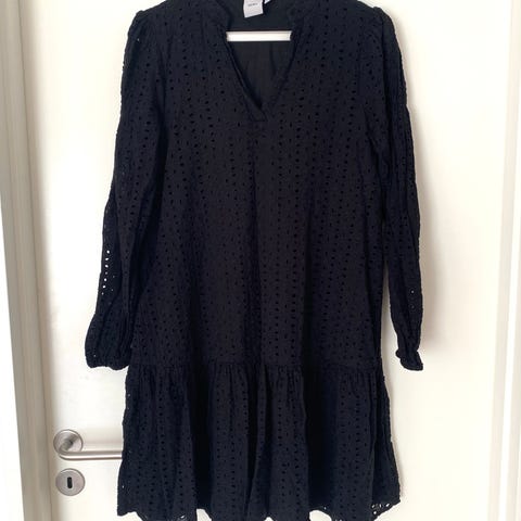 Snart kjole fra Noshi modig mind i mørkegrå meleret. Den har trekvart ærmer der kan trækkets lidt op for smart look og skrålommer i siderne.
