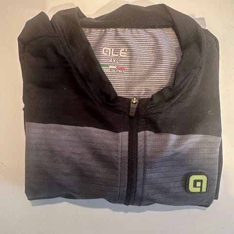 Alé XXL cykeltrøje. Fremstillet i Italien med materiale designet til cykling. Trøjen har lange ærmer, fuld lynlås foran og tre lommer på ryggen til opbevaring under cykelture.