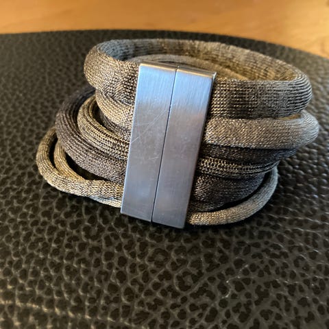 Metalarmbånd regulerbare med pels fra mink, sæl, lam. Indfarvet Swakara, sæl, mink. Lavet af designprøver fra Kopenhagen Fur. Unika