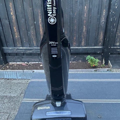 Nilfisk opretstående støvsuger Easy 2.1, 20 V, med 20 måneders garanti/reklamationsret hos Skousen, oplader, del af støvsuger kan bruges som bordstøvsuger, se billede 2, fast pris