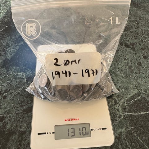 En ske er lavet af en 2 krone fra 1903 som tydeligvis ikke er brugt så meget som de andre skeer..