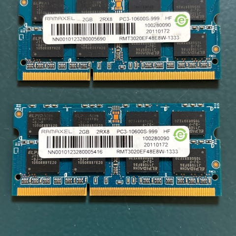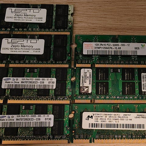 Sælger 5 stk. DDR3 SO-DIMM RAM á 1GB pr. modul.