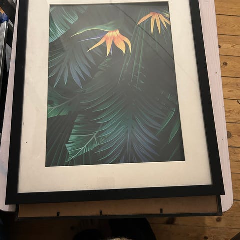 Jysk Flowers Poetry billedramme med sort ramme. Ramme til ophængning af billeder eller plakater, designet til at beskytte og fremvise indholdet.