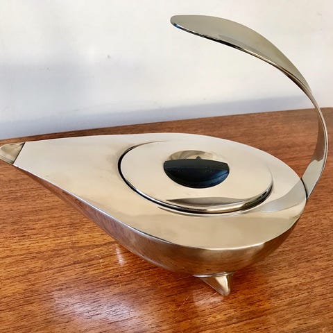Vintage Naoko Bodum tekande med tilhørende sukker skål og flødekande i blank poleret stål med messing detaljer