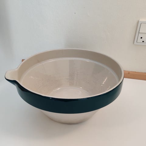 Hvid lerfad, højde ca 13 cm, diameter ca 24 cm