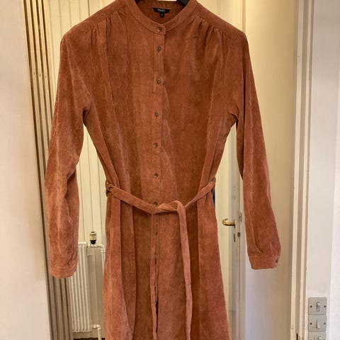 Str. 42-44 Flot kvalitetskjole i bordeaux fløj, afslappet pasform og knaplukning hele vejen ned. Den er nem at style lag-på-lag, med 3/4lange ærmer med elastik og en klassisk skjortekrave.