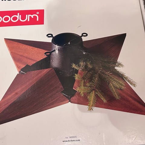 Der medfølger kiler så det er nemt at få træet til at stå fast. Det er som ny.