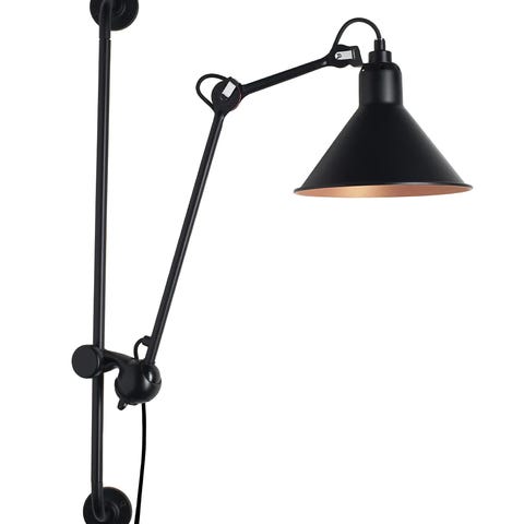 Den har et kugleled som kan løsnes, hvis lampen skal drejes. Skal typisk sidde på en væg eller i loftet da der er 3 huller i foden til montering.