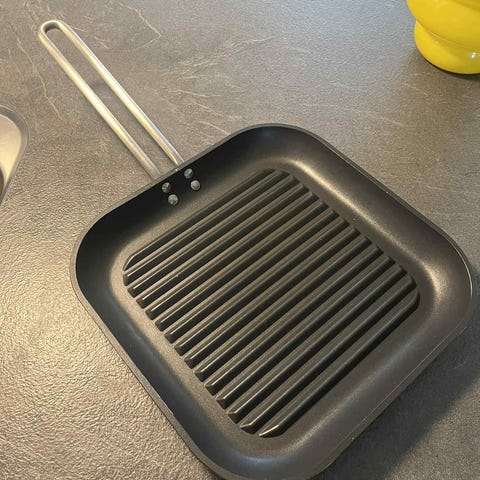 Helt ny Eva Solo Eva Trio Professional grillpande med non-stick belægning og lang håndtag. Grillpanden er designet til effektiv stegning og grillning, og den har en størrelse, der passer til forskellige madlavningsbehov.