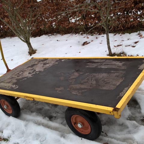Traktor påhængsvogn/trailer, kan ved 12v fra traktor el hydraulisk løfte og transportere 4 stk 400 L affaldscontainere, den er pæn og uden skader, skal synes ved omregistrering egenvægt 600 total 2500 kg. den er + moms