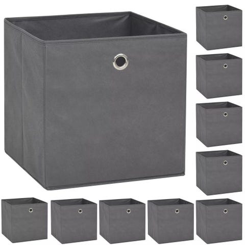Opbevaringskasser med låg 10 stk. 32x32x32 stof grå