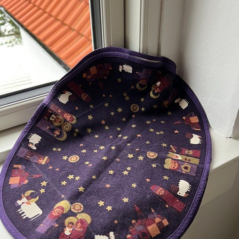 14 stk. Smukke hjemmehæklede retro dækkeservietter samt bordløber