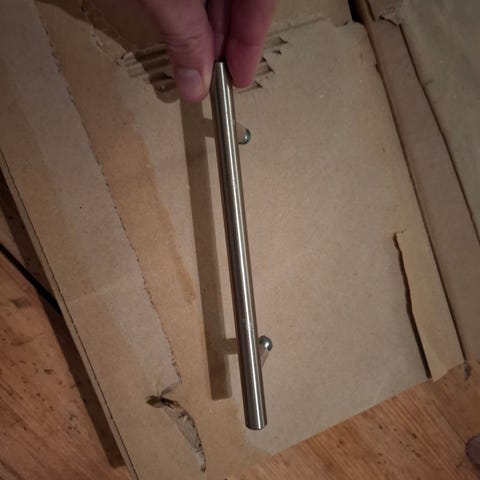 Køkkengreb 29 stk. Metalbeslag til møbler med en længde på 29,5 cm. Beslagene er fremstillet i metal og har en firkantet form med en vinkel på 90 grader. De kan anvendes til samling og forstærkning af møbler eller andre konstruktioner, hvor vinkelbeslag er nødvendige.