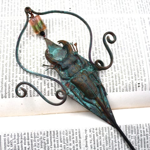 Blomsterpind i kobber med insekt lavet af smykke kunstneren Torben Hardenberg