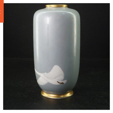 vase fremstillet i rød keramik med unikt, bølget design. Vasen har en firkantet form og en blank overflade. Velegnet til dekorative formål i hjemmet eller som samleobjekt. Har en lille bitte skade på kanten, 12 cm høj