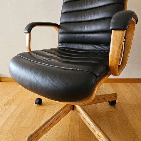 Stoll Giroflex kontorstol i egetræ og læder – Albert Stoll