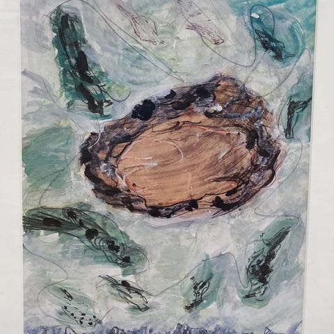 Signeret indrammet kunsttryk af Kirkeby. 70 x 90.