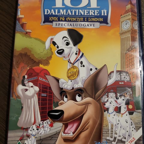 Disney 101 Dalmatinere II DVD med dansk tekst. Film i standard DVD-format med animation og familietema. Produktet er egnet til afspilning på kompatible DVD-afspillere.