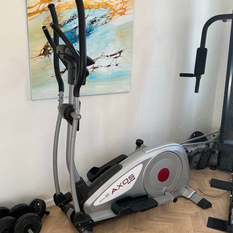 Kettler Axos Mot E crosstrainer med elektronisk display til visning af træningsdata. Træningsmaskinen er designet til hjemmetræning og har flere funktioner til at overvåge og justere træningsintensiteten.