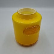 Mundblæst Holmegaard Palet glas skål i opal hvid med grøn stribe, designet af Michael Bang i 1969 og var i produktion til 1976.