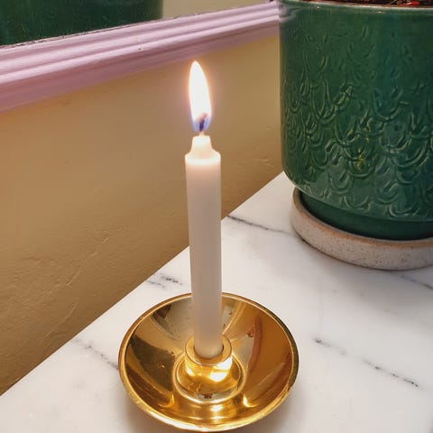Et fyrfadslys passer desværre ikke i bunden, ved ikke hvad tanken er med hulrummet på bagsiden.