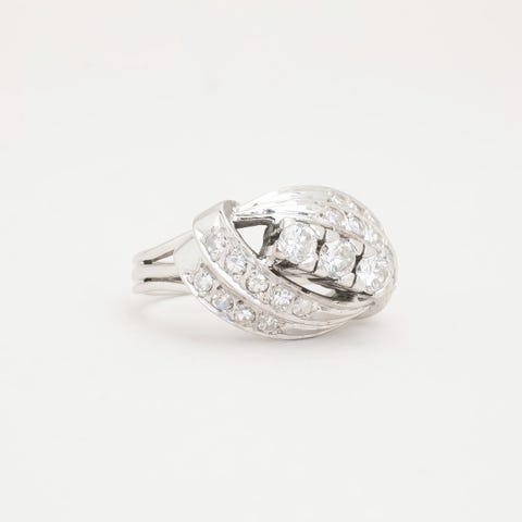 Clusterring i 14K hvidguld med diamanter (0.24 ct) og én