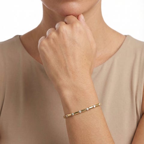 Guld Armbånd med diamant i 9 karatVægt: 4.75 gram\nLængde: 19.5 cm\nBredde: 3.7 mm\nStand: Som ses på billeder, god stand med almindelige brugsspor og slidtageHos anotherslegacy.dk får du:\n✓ Gratis fragt på alle produkter\n✓ Pakken sendes inden for 1-2 dage\n✓ Din pakke er forsikret under transport\n✓ 14 dages guld bytte- og returretHos anotherslegacy har vi høje standarder, til de produkter vi sælger:\n• Alle produkter er blevet ultralydsrenset\n• Alle produkter er gennemgået for fejl og mangler\n• Alle produkter har fået en lødighedstest i røntgen maskine. Vi sælger IKKE forgyldte genstande\nBook en fremvisning i dag.Butik:\nH. C. Andersens Blvd. 38 st. tv., 1553 København V\nMandag-Fredag 09:00-17:00\nGG154094
