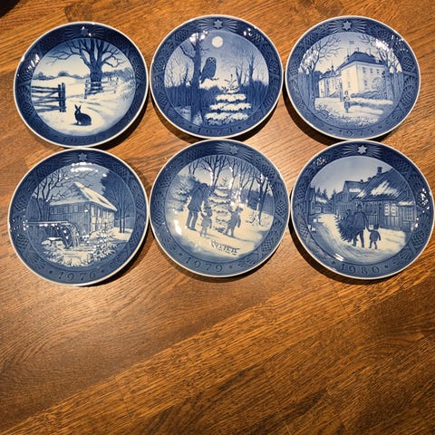 Royal Copenhagen Juleplatte 1975 porcelæn juleplade blå hvid