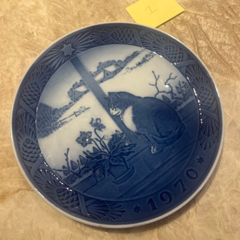 Royal Copenhagen Juleplatte 1970 - Jule Rose og kat