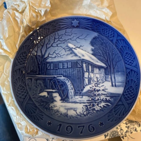 Royal Copenhagen Juleplatte 1976 porcelæn blå hvid kat