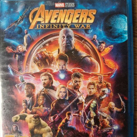 Avengers Infinity War Blu-ray film. Blu-ray disc format with a total runtime of approximately 149 minutes. Language options include English, Danish, Finnish, Norwegian, and Swedish. Suitable for viewers aged 12 and above.