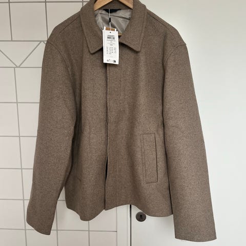 Superflot jakke, nypris 1.000 kr. Købt for lille og næsten ikke brugt. Fremstår som ny. Uld for og bag, ærmer i skindmateriale. Sort vatteret foer.
