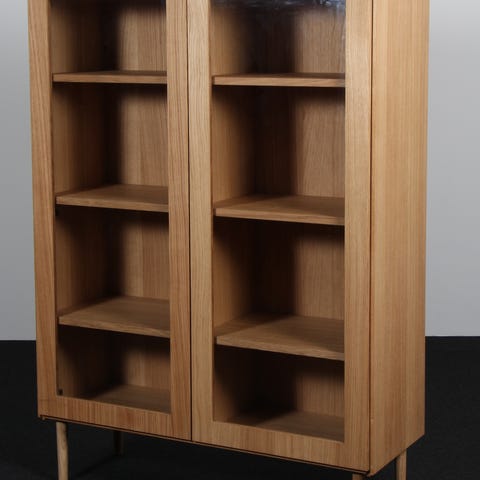 Plauborg X Another Classic dansk produceret Reol med korpus af fineret eg med en låge hvor bag hylder. Ben samt kantlister af massiv eg. Fremstillet hos Plauborg. H. 146 B. 102 D. 38 cm. Nyproduceret i Danmark. 2-3 ugers leveringstid.