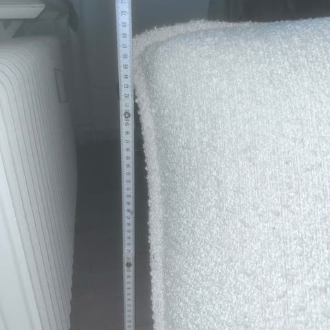 Der er en pude som er syet og en tråd i en anden pude, har ingen betydning for sofaen. (Se billeder)
