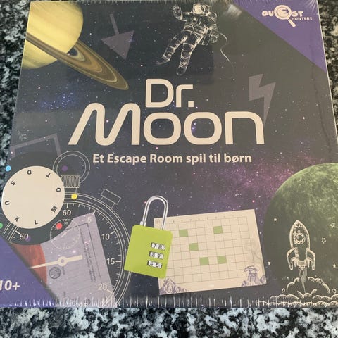Dr. Moon Escape Room spil til børn fra 10 år og op. Spillet indeholder opgaver og gåder i en rumtemaindstilling, designet til at udfordre problemløsning og samarbejde. Komplet. Sender ikke for køb under 200 kr.