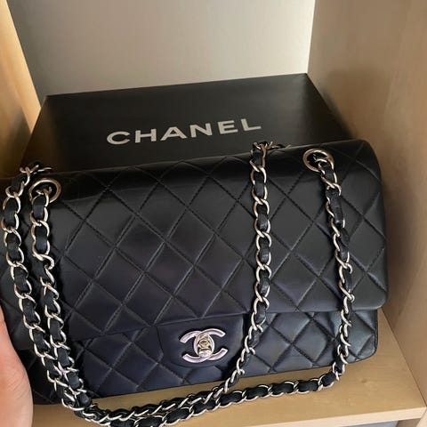 Generellt: En mycket fin CHANEL Small Double Flap i svart lammskinn med detaljer i guld.