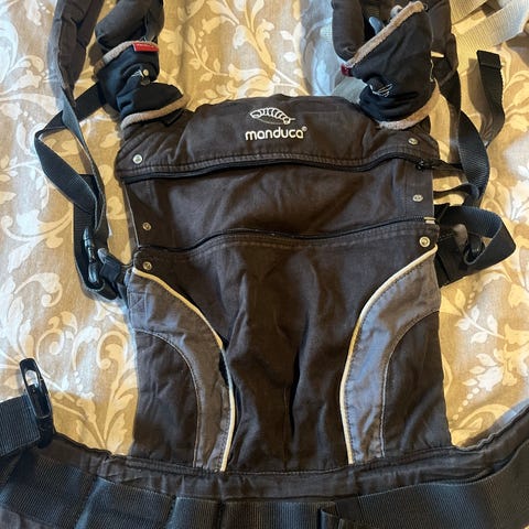 Manduca babybæresele i sort farve. Designet til at bære babyer med justerbare stropper og polstrede skulderremme for komfort. Fremstillet i slidstærkt materiale.