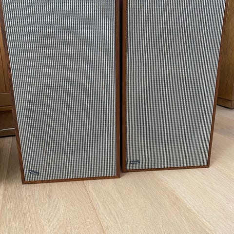 Et par sjove fødder til at placere små højtalere på gulvet pegende skråt op. Højtalerne på foto er HECO P 3001 som måler 40 X 22 X 17 cm ikke meget mere en et par LS3/5a.