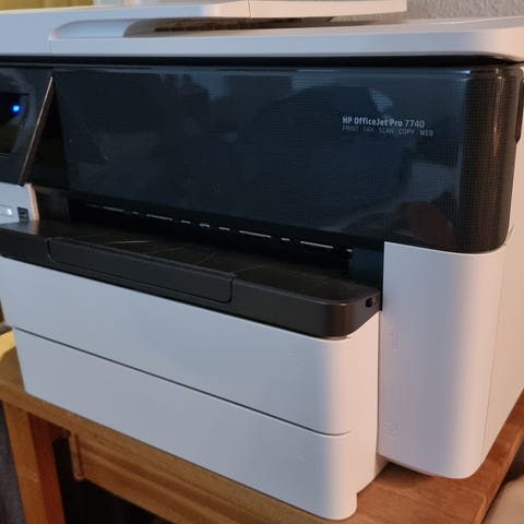 HP Officejet Pro 7740 er en alt-i-en inkjetprinter, der kan farveprinte på A3-papirstørrelse.