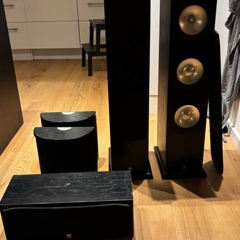 arcitec acoustic højtaler som spiller super godt har 7 stk. der giver dejlige detaljer i lyder når man ser film men er os gode til musik.