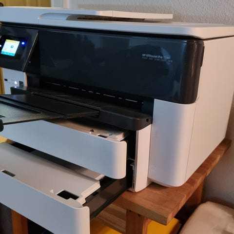 HP Officejet Pro 7740 er en alt-i-en inkjetprinter, der kan farveprinte på A3-papirstørrelse.