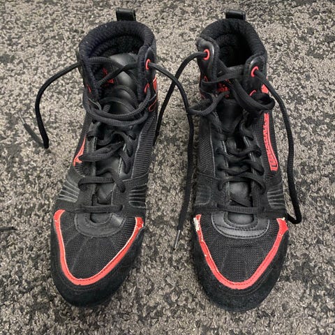 Støvlerne er en størrelse 42 (UK 8 / 26.5 cm). Det er en super let og lækker støvle med en kombination af læder og mesh, der sikrer, at dine fødder kan ånde, samtidig med at du får den nødvendige støtte omkring anklen. Perfekt til boksning, fitnessboksning eller som en fed indendørs træningssko.