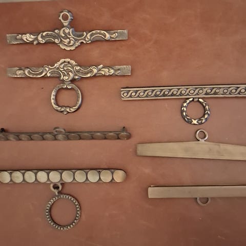 8 Vintage messingbeslag, skuffegreb med dekorativt motiv